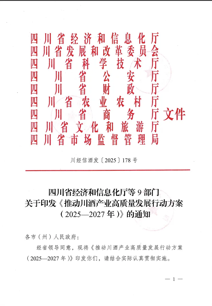 近日,四川九个部门联合向各市州印发《推动川酒产业高质量发展行动方案(2025--2027年)》,方案通过7个方面、21条举措,为川酒未来三年发展指明了方向。