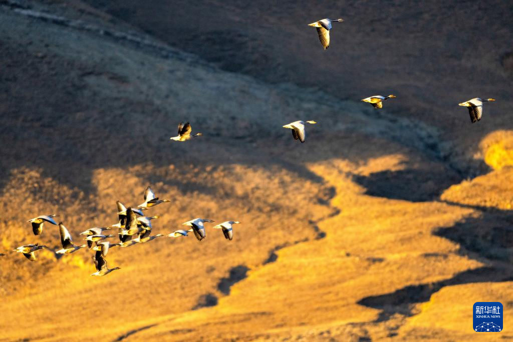 这是11月23日在西藏拉萨市林周县拍摄的越冬候鸟。新华社记者 姜帆 摄