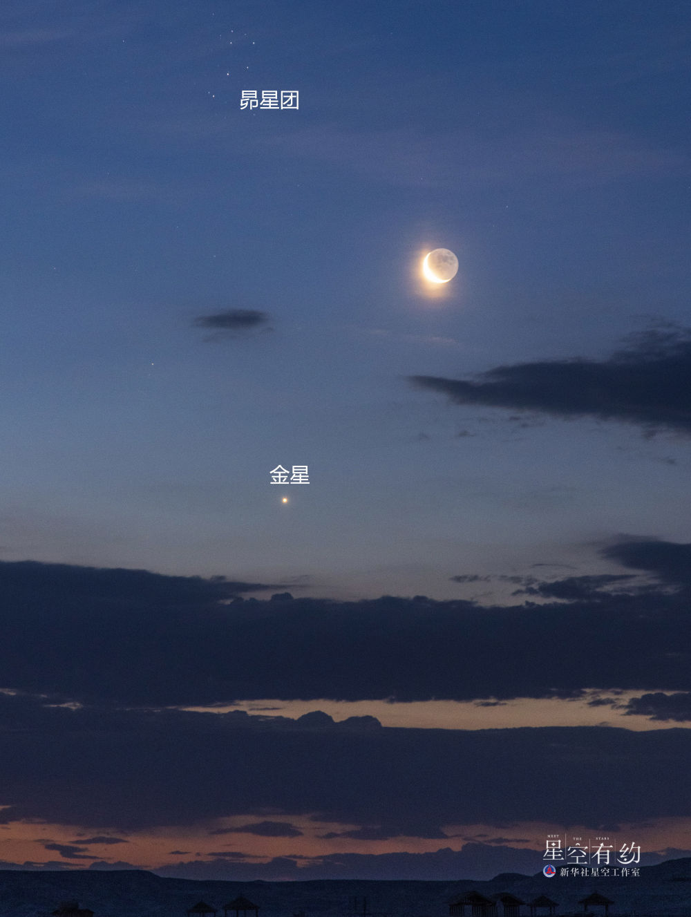 重庆市天文摄影爱好者戴建峰2022年6月26日在新疆哈密拍摄的金星与昴星团。(本人供图)