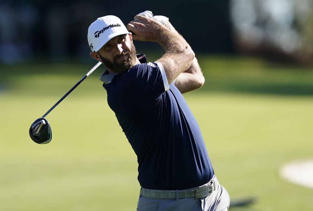 11月13日,在美国奥古斯塔高尔夫球大师赛第二轮的比赛中,美国球员约翰逊正在挥杆。