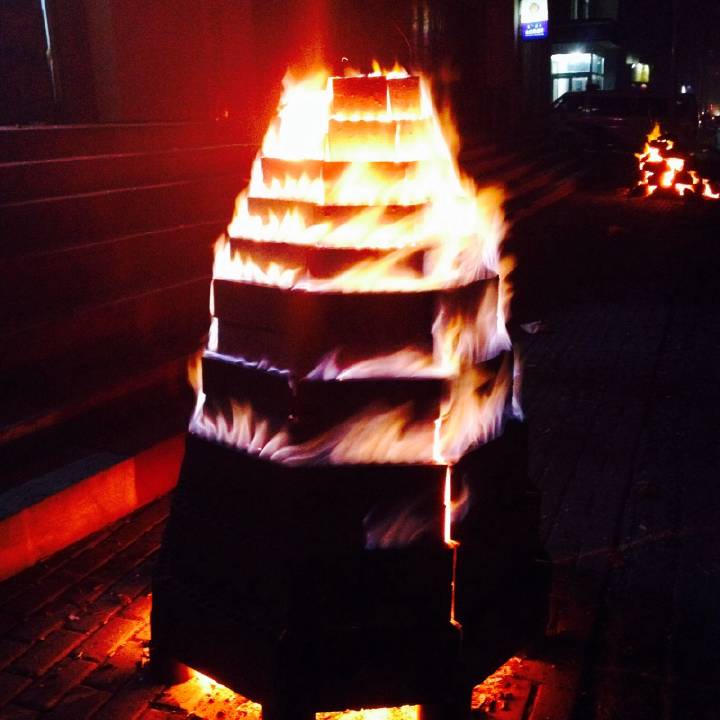 午夜十二点,鞭炮齐鸣之时,将旺火点燃。点燃后,火苗从无数小孔中喷出,状若浮图,既御寒,又壮观。大人孩子围起一圈,有的做游戏,有的放鞭炮,男女老少都要来烤火,以图“旺气冲天”。