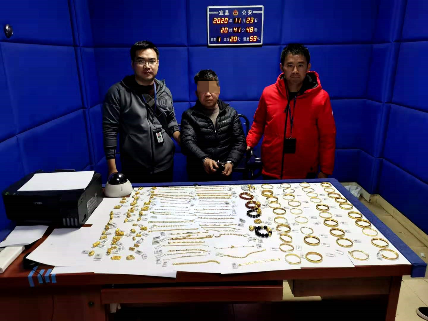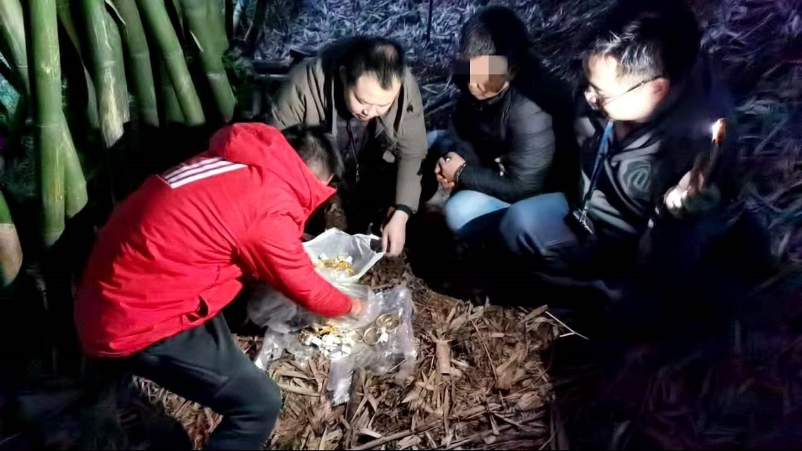 经审讯,犯罪嫌疑人李某安对砸开珠宝店展柜盗窃黄金首饰的犯罪事实供认不讳。11月23日,在李某安交代赃物藏匿地点后,专案组民警于当日18时左右在高县庆岭镇一村民屋基附近竹林中起获被盗的133件黄金首饰。至此,该盗窃案中被盗物品全部追回。目前,犯罪嫌疑人已被依法刑事拘留,案件正在进一步侦办中。