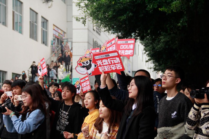 在四川农业大学成都校区,以“光盘行动”为主题的校园快闪与同学们见面,原创唱跳RAP吸引近千名同学驻足观看,同学们手举印有“天地粮心 拒绝剩宴”“川农青年 节约勤俭”等应援牌为表演打call;在四川体育职业学院,“熊猫侠”空降学校,在学生食堂作光盘宣誓,并进行为期30天的光盘打卡;四川轻化工大学的宜宾和自贡两个校区结合校园第二课堂,开展“我是光盘侠”短视频大赛,辐射学生4万余名……