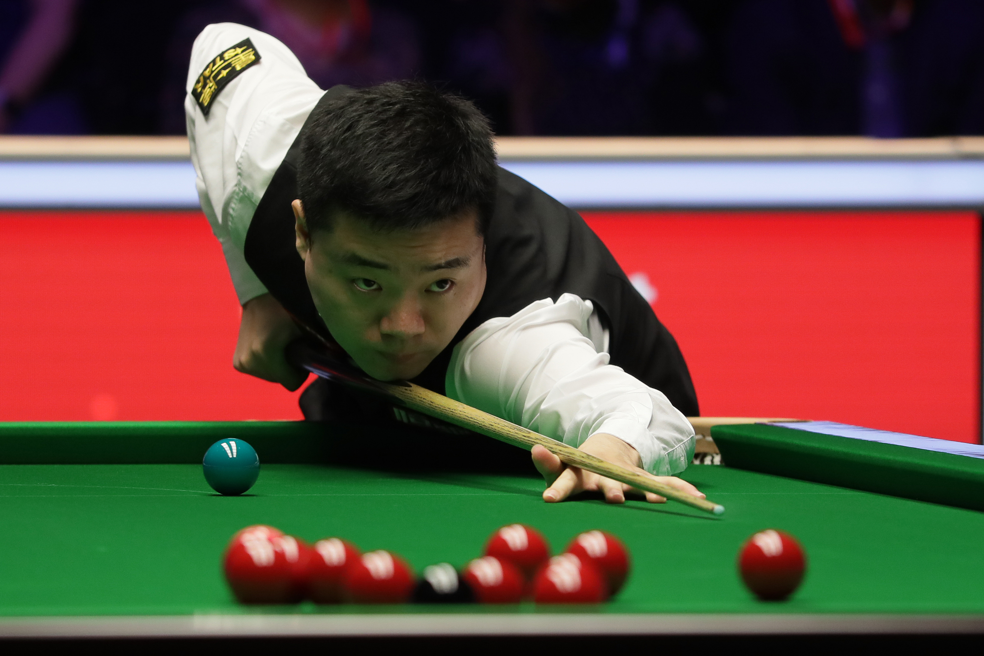 资料图:丁俊晖在比赛中。新华社发(蒂姆·爱尔兰摄)
