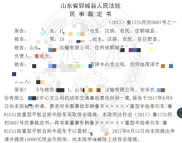 同样,在2018年4月20日,山东省巨野县人民法院出具的民事判决书显示,董成允作为郓城县某运输有限公司的经理被起诉。