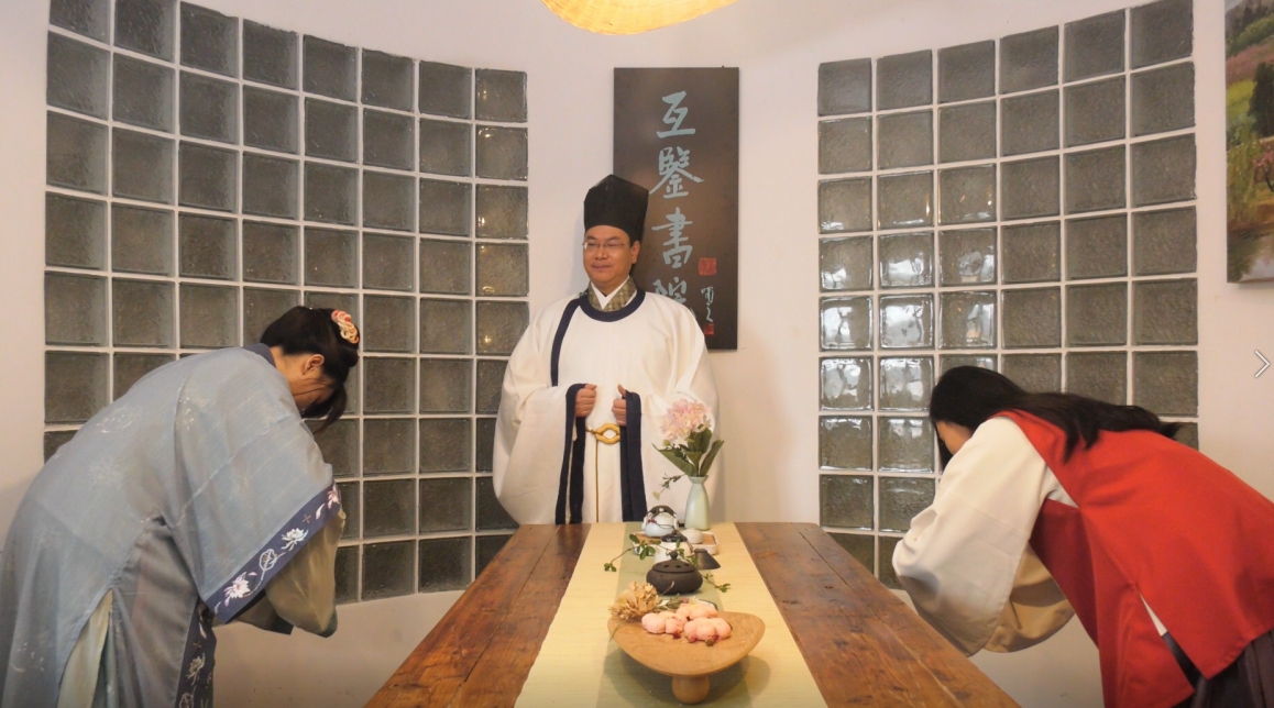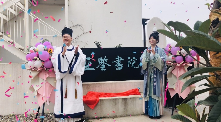 “云揭牌”仪式中,山长蔡尚伟身着以历史记载的张载容像图为参考而定制的汉服——宋制襕衫——开讲,并演绎“互鉴联”“互鉴辞”。蔡尚伟谈到,张载是南宋著名思想家、教育家,其讲学的主旨集中地体现在横渠四句中:“为天地立心,为生民立命,为往圣继绝学,为万世开太平”。国立四川大学曾以此为校训。张载的、横渠四句身上恢弘大气的精神气象都与互鉴精神十分契合。