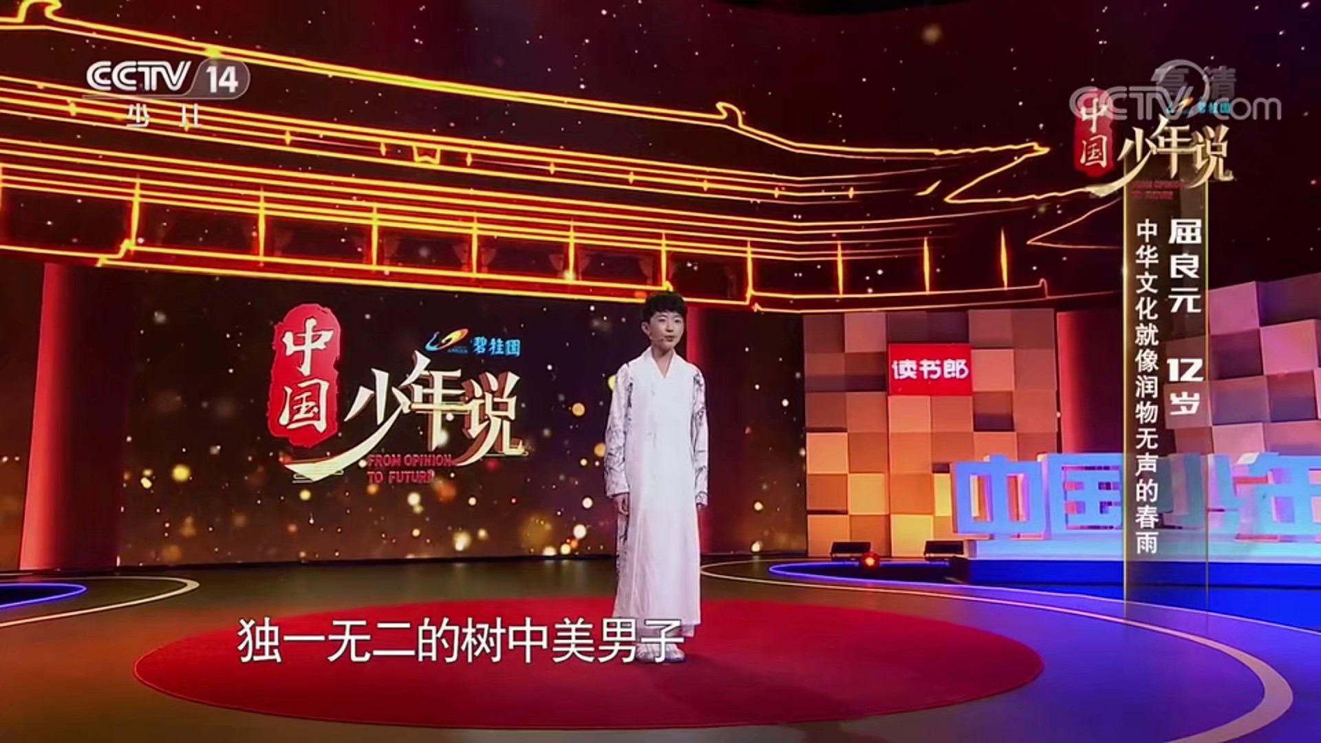 19日,河北卫视《我中国少年》第三季开播。来自成都王府外国语学校,诗书满腹,文武双全,有着“国学少年”之称的屈原第76代后人屈良元在节目中亮相。