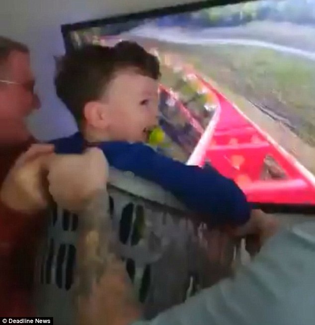 爸爸丹尼尔说:“这只是一个即兴的想法,在我们坐了一次模拟过山车后,他还叫喊着要再来几次!所以我们做了好几次。我的胳膊都酸疼了,他爷爷体力不支了,所以我们不得不停下来。”“不过,我肯定他下个星期还想再来一次。”