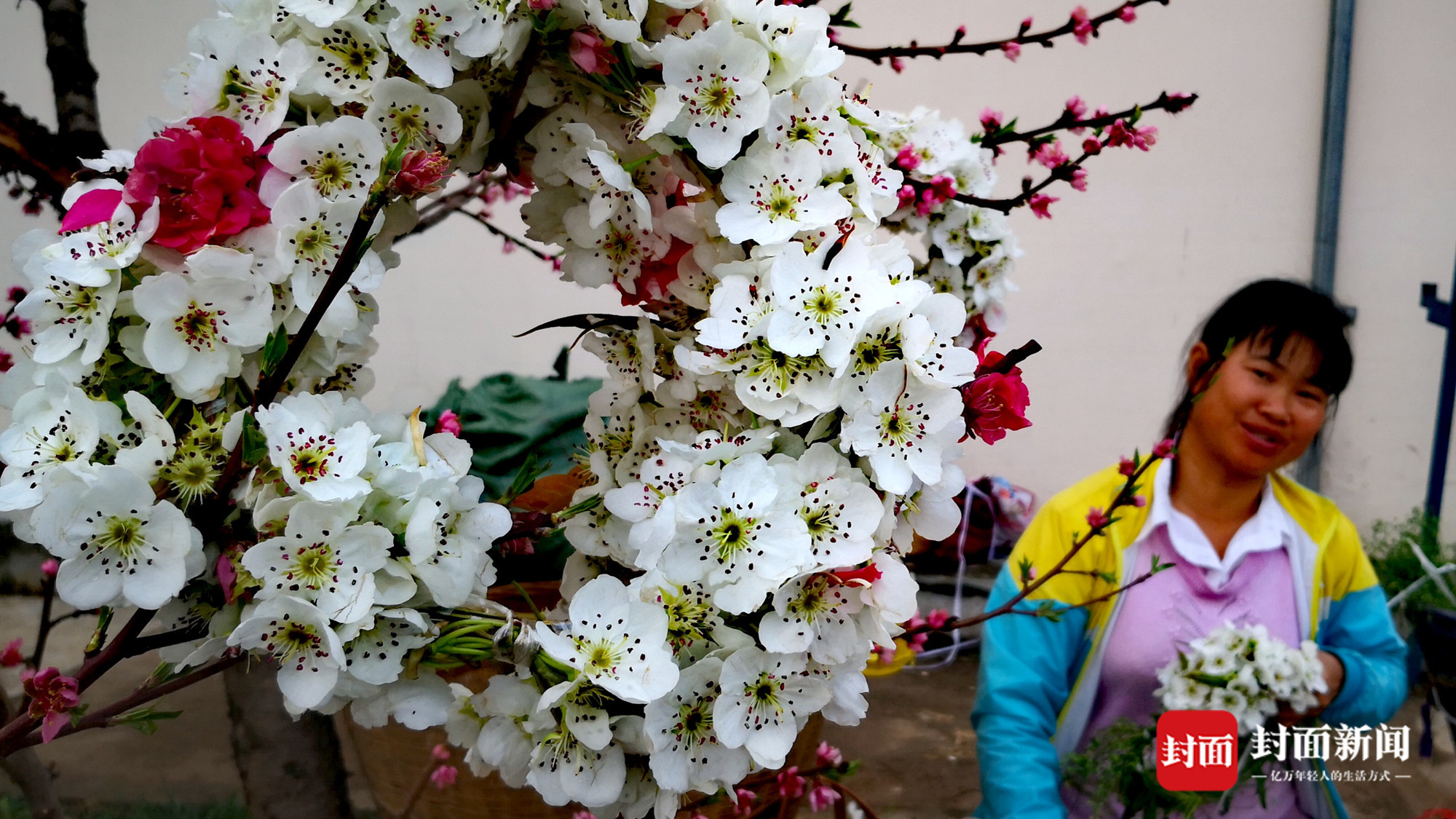 除了梨花,桃花也开了,一红一白,相映成趣。当地村民摘下梨花、桃花,编织成漂亮的花环,别有一番风情。游人们兴致盎然,徜徉其间在梨花桃花间,不时穿过白墙灰瓦的小院,不时走过流水潺潺的小溪,间或停下来拍照留影,有的还买一顶花环戴上,满脸都是春光明媚。