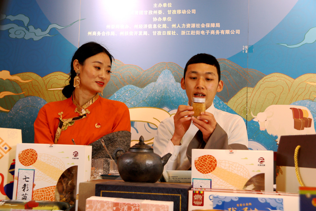 由共青团甘孜州委、中国移动甘孜分公司主办。直播间内,由青年网红志愿者和农牧区创业青年代表组成的直播团队正在向全国各地的网友们推荐甘孜特色农牧产品。通过州县乡村联动、线上线下互动、网红达人带动,由各县青创商城推送的七彩山珍菌汤包、莫木堂蜂蜜、蓝逸奶茶等10余种扶贫产品陆续销售一空。