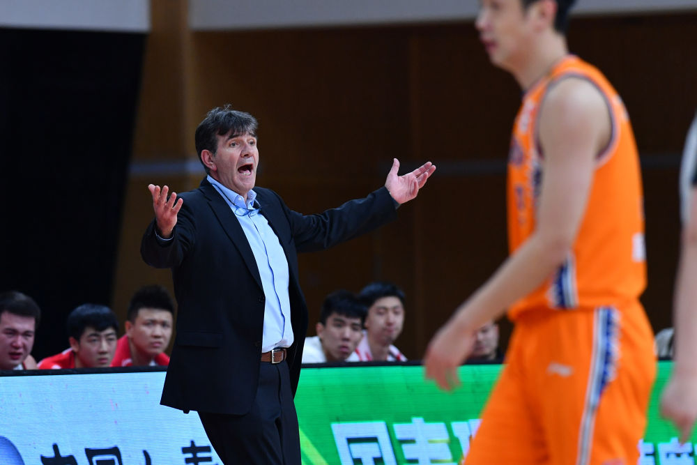 12月30日,南京同曦队主教练贝西诺维奇(左)在比赛中。新华社记者 朱峥 摄