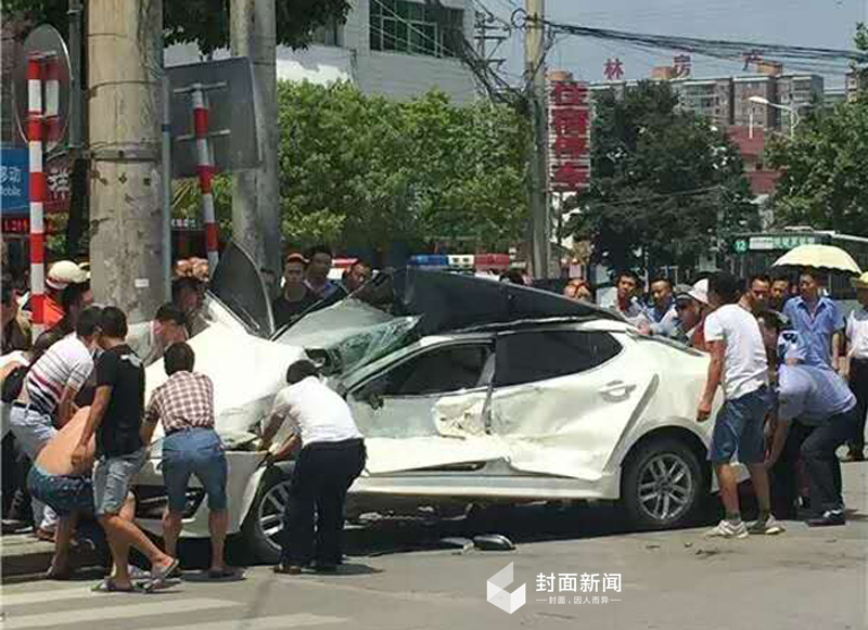 8月7日,陕西汉中洋县五路口发生一起铲车故意撞击轿车的恶性事件,造成轿车副驾驶乘坐的乘客死亡。图为事发现场。图/视觉中国