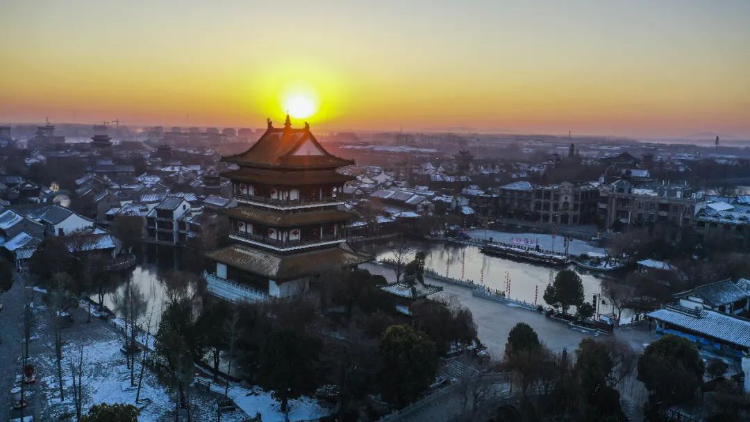 山东枣庄,台儿庄古城新年日出。