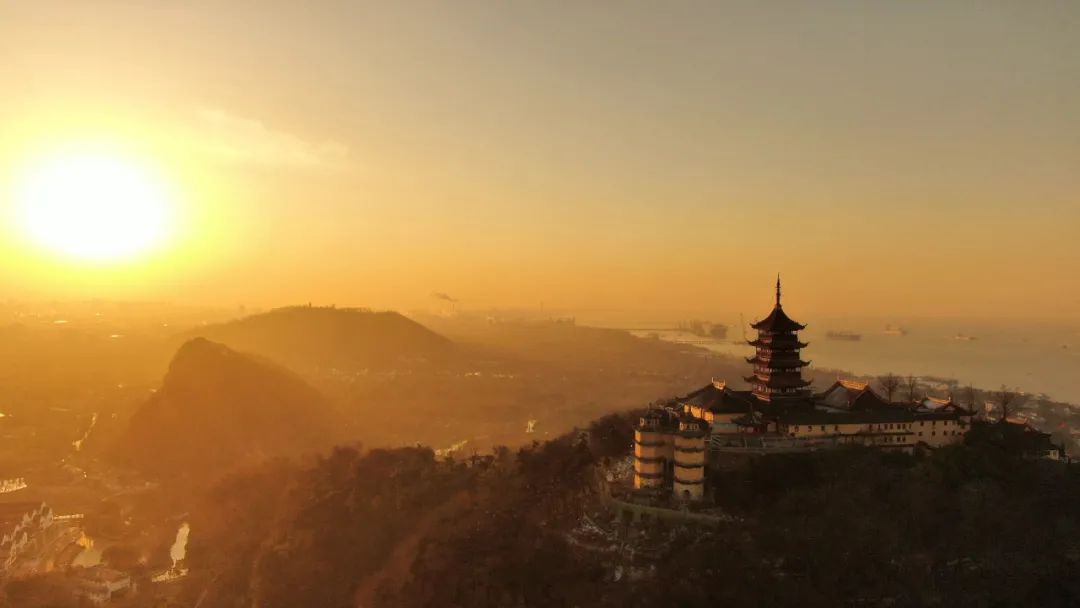 江苏南通,狼山国家森林公园日出美景。