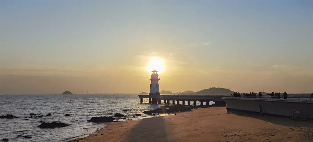 广东珠海,情侣路上新年第一缕阳光。