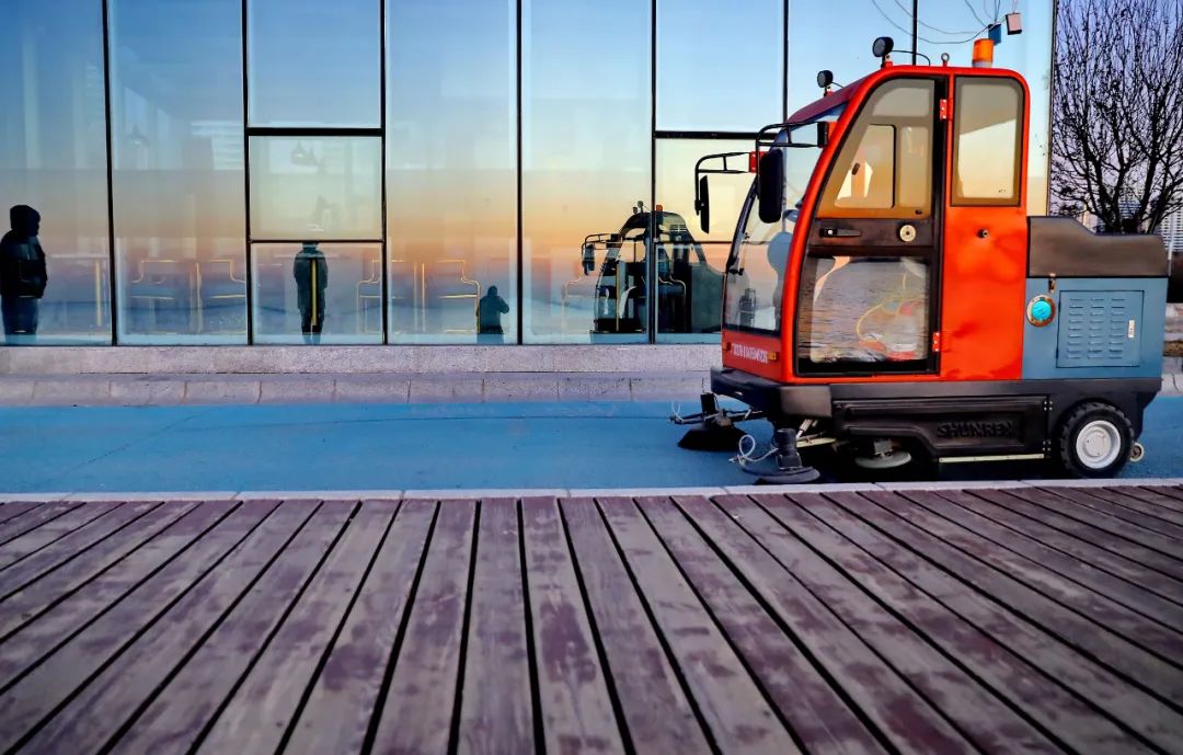河北秦皇岛海港区,金梦海湾的工人们正在进行清洁作业。