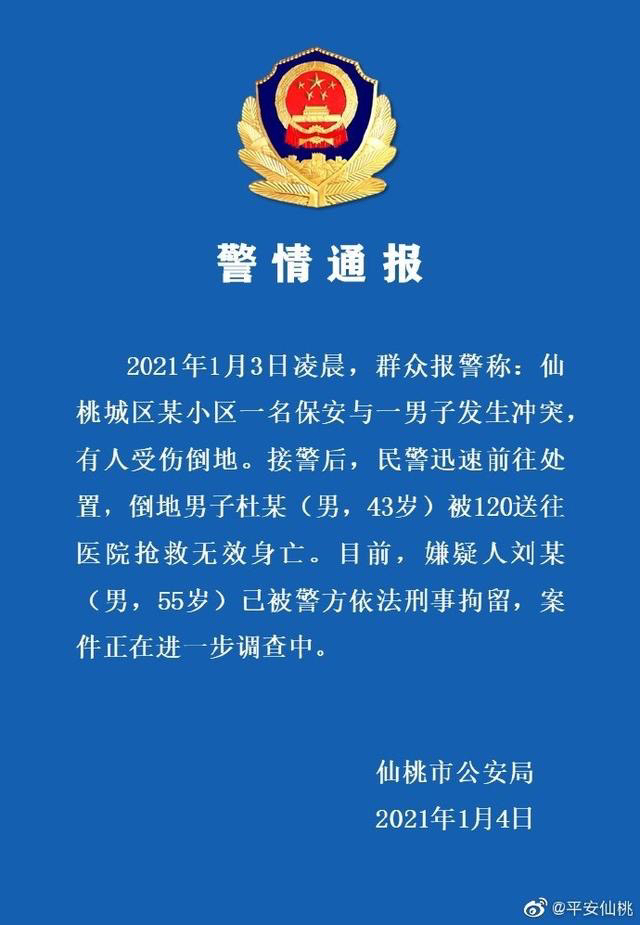 据相关报道,该案件目击者王女士曾介绍,1月2日深夜,饿了么外卖员杜某送完外卖,从五期门口出小区时被保安拦下。保安要求外卖员杜某从其它出口出小区,双方为此发生口角。随后冲突升级,保安刘某持类似警棍的棍子朝外卖员头部打去,外卖员杜某倒地不起。警方赶到现场后杜某被送医,之后不治身亡。