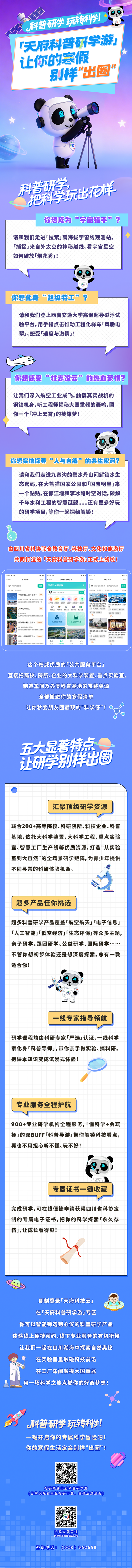 目前,平台上已汇聚了上千个科普研学阵地和线路产品,包括以大科学装置为代表的“精品”研学游,以高校院所为依托的“沉浸式”研学游,以科技型企业等为载体的“体验式”研学游,以及以科普场馆等为依托的“普惠式”研学游。