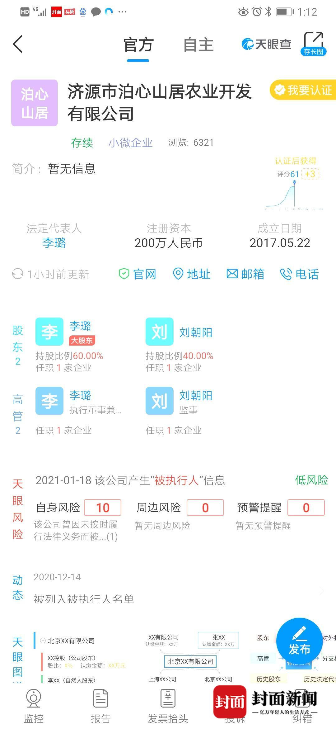 天眼查显示,济源市泊心山居农业开发有限公司成立于2017年5月,注册资本200万元,位于济源市承留镇孤树村一组。天眼查显示公司还处于存续状态,李安林说:“遭强拆了,建筑物都没有了,公司早就倒闭了。”