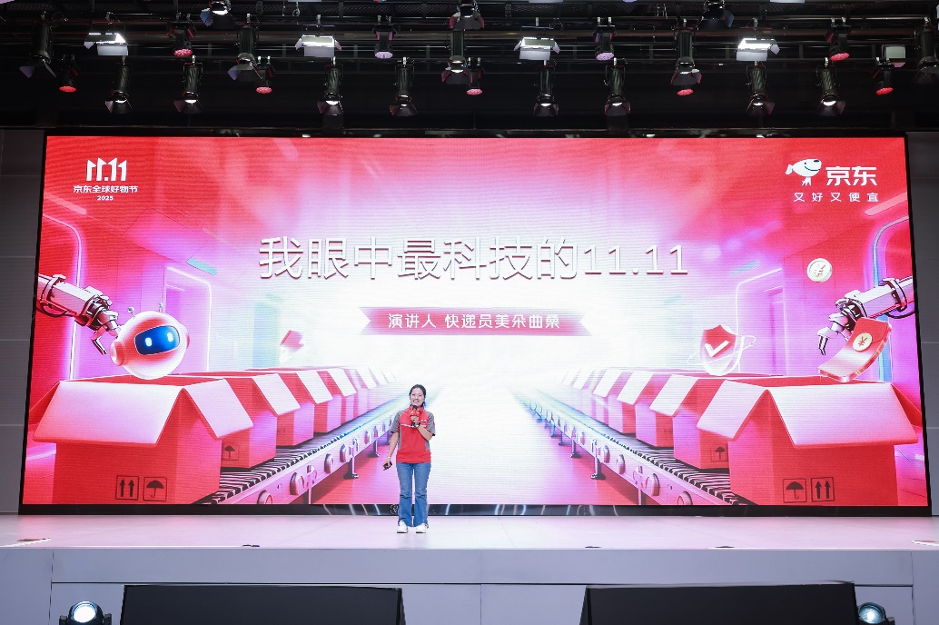 11月11日,2025京东11.11媒体开放日在北京举行。活动现场,来自西藏山南乃东站的快递女站长美朵曲桑,从一名快递员的视角分享了京东11.11期间物流科技给包裹流通带来的便利。
