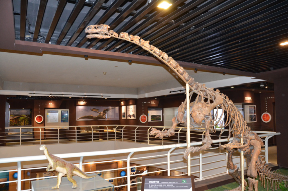 其次,它的骨骼化石1938年发现于云南禄丰,且保存得非常完整。1941年,这具骨骼化石在重庆北碚装架,成为由中国人装架起来的第一具恐龙骨架。如今在中国古动物馆二层“恐龙走廊”里展出的这座许氏禄丰龙标本,正是80年前在重庆展出过的那具骨架。