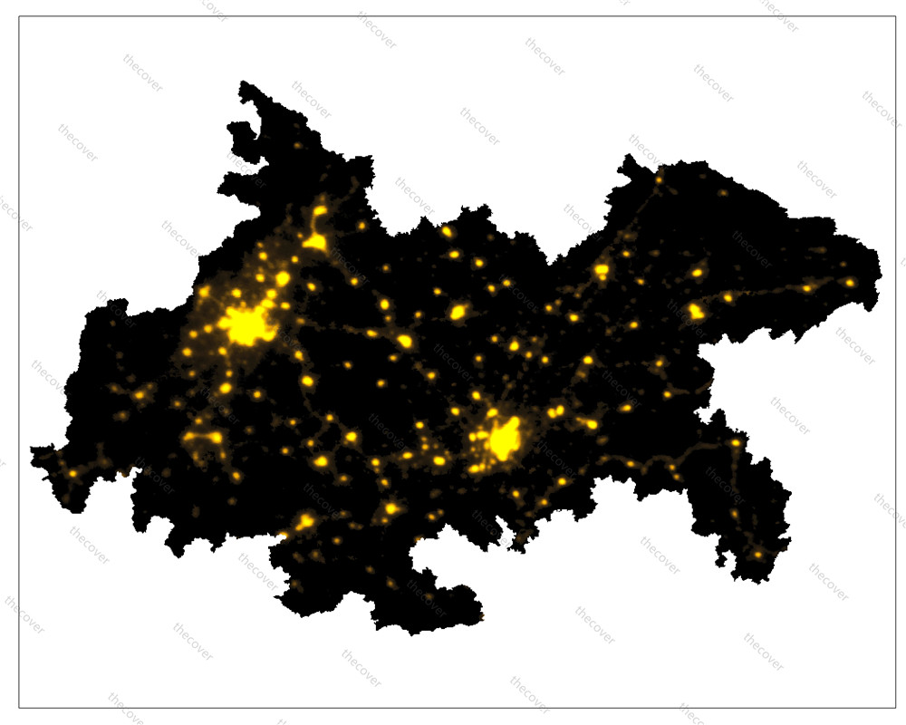城市灯光与这座城市繁荣是否相关,城市与城市之间灯光的形状,同样也能反映核心城市互动是否频繁、产业是否互相依赖。