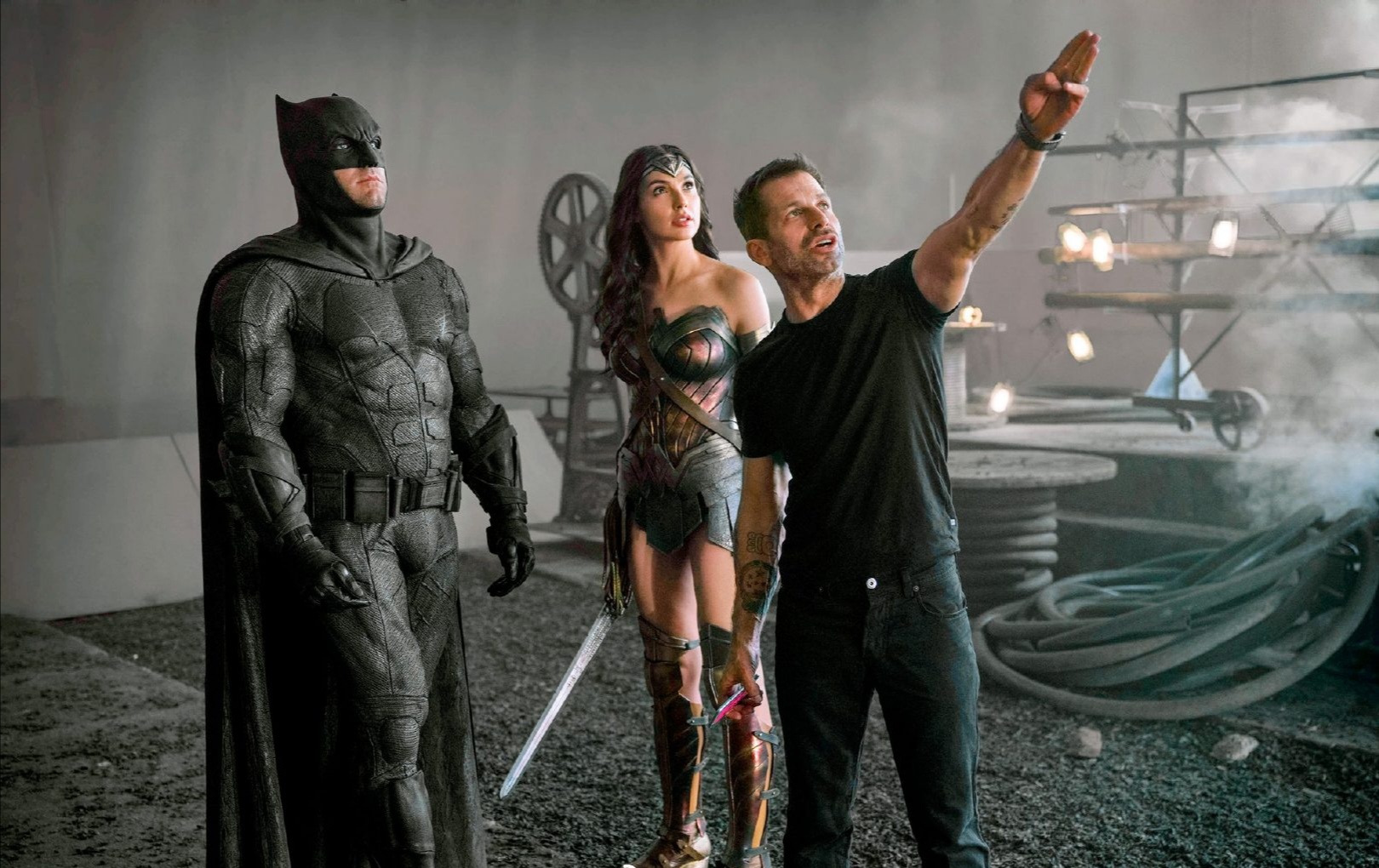 扎导正在给“蝙蝠侠”、“神奇女侠”说戏