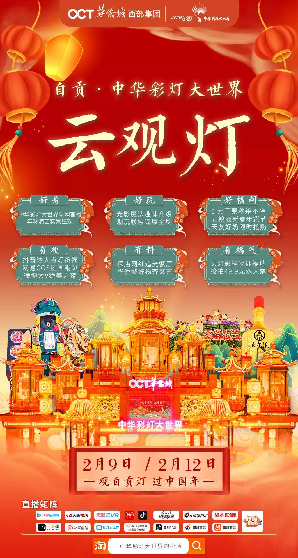 届时,璀璨彩灯、新年玩乐、地道美食、民俗文化将带给大家全新的沉浸式体验,在云上,一起找回记忆中的那份“年味儿”。