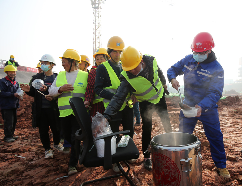 “吃汤圆喽!”“快来吃汤圆!”2月12日,正月初一,中午,中国五冶成都东部新区项目建设现场,一碗碗热腾腾的汤圆被陆续端进来,分发到正在紧张作业的工人们手里,给热火朝天的工地增添了一份年味。