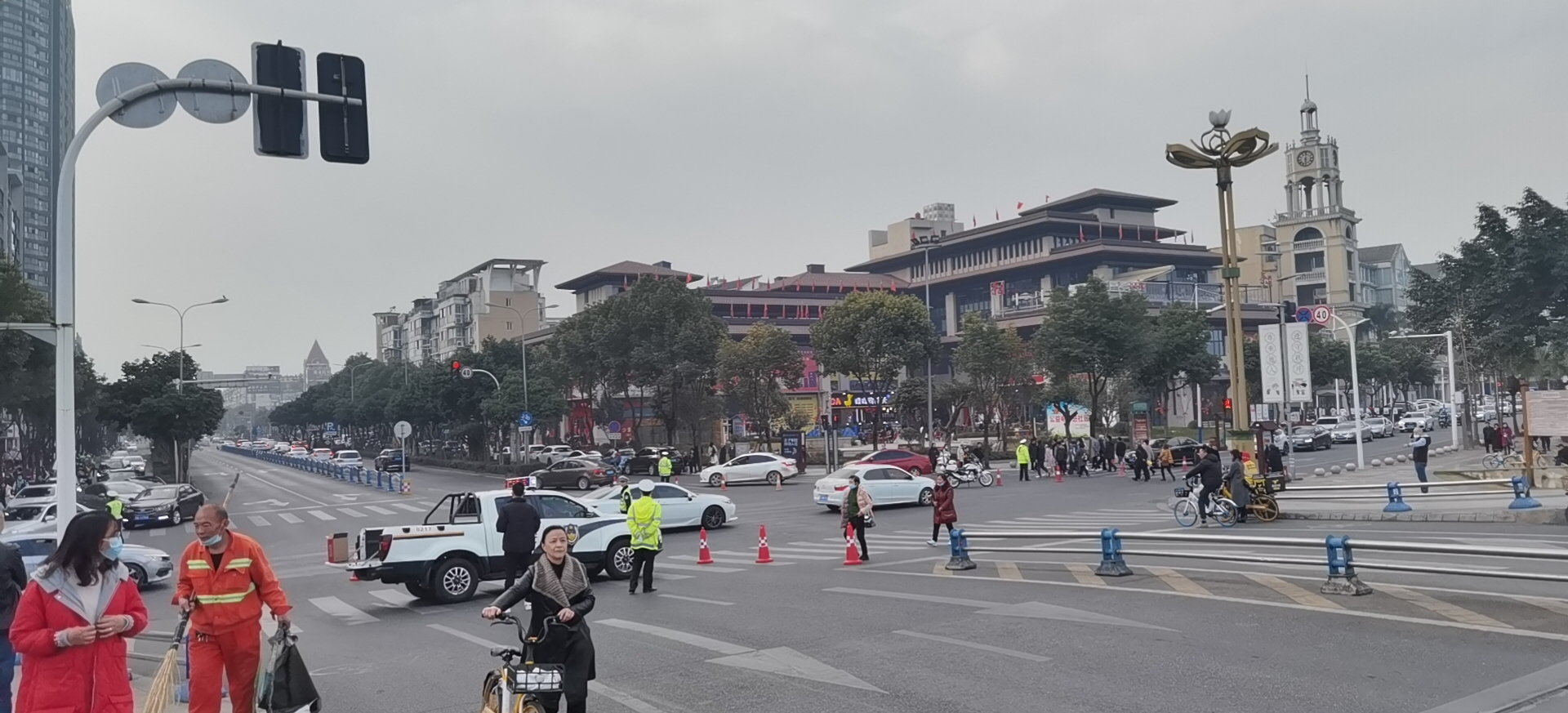 老泉桥上的交通管制与分流,从红星路二段与临江街十字路口便开始了