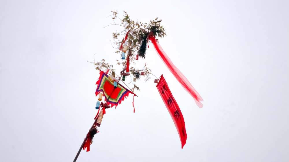 在送灶王的仪式上,人们还要竖起幡杆(即春幡),避邪消灾。
