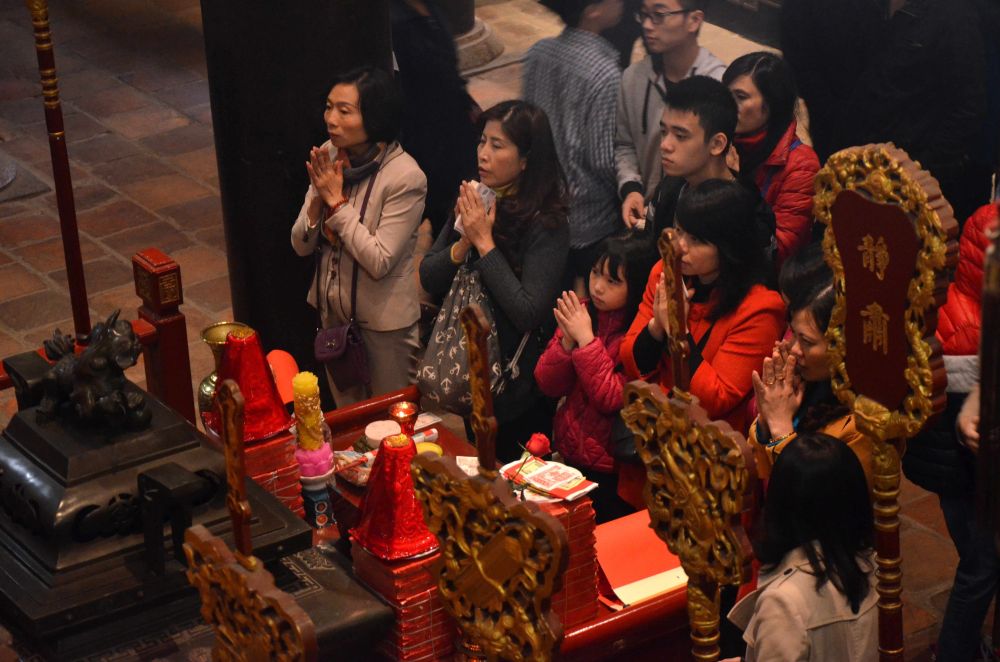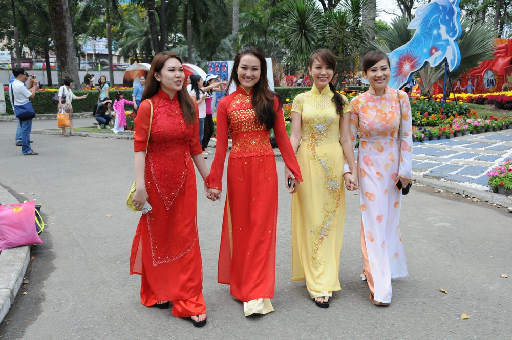 同中国人一样,越南人也有除夕守岁的习俗。 越南春节时气温仍在零上十度左右,除夕时人们穿上节日盛装,年轻女子穿上传统服饰奥黛,纷纷涌上街头。在河内,人们还会聚集在还剑湖畔看焰火。