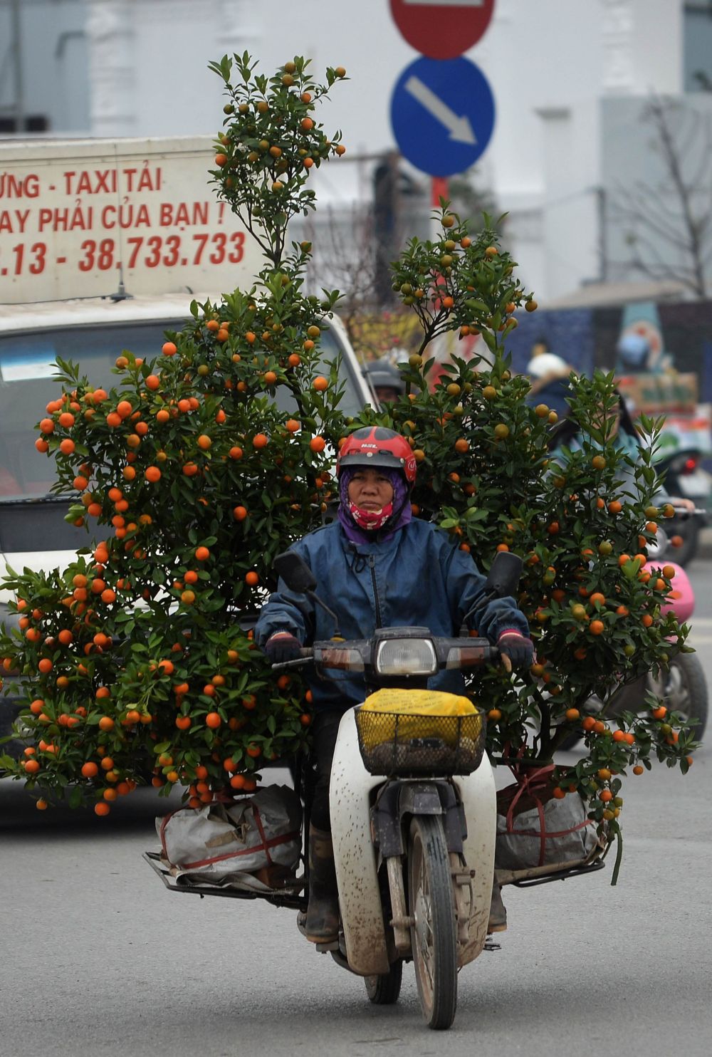 走在街上,常常看到一辆辆摩托车或是自行车驮着一棵比人还高的金橘。