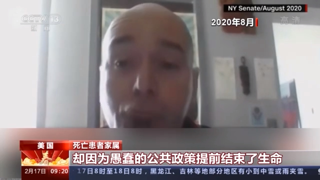 美国新冠死亡患者家属:我是为我妈妈来作证的,我妈妈本可以过上她的82岁生日,却因为愚蠢的公共政策提前结束了生命。我妈妈被关在养老院里,和新冠肺炎呈阳性的病人在一起,只有当我妈妈表现出了新冠肺炎的症状后,我去质问养老院的官员,他们才说是州政府强迫他们接收新冠病人,而且他们不能保证我妈妈没有暴露在病毒环境中。