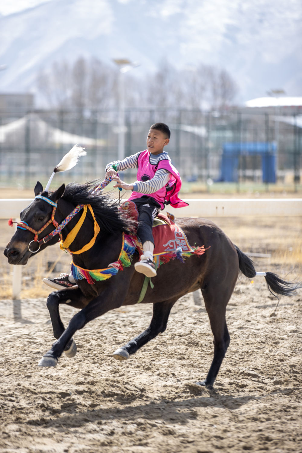 3月2日,一名小选手在5000米民族赛马比赛中驰骋。新华社记者 姜帆 摄