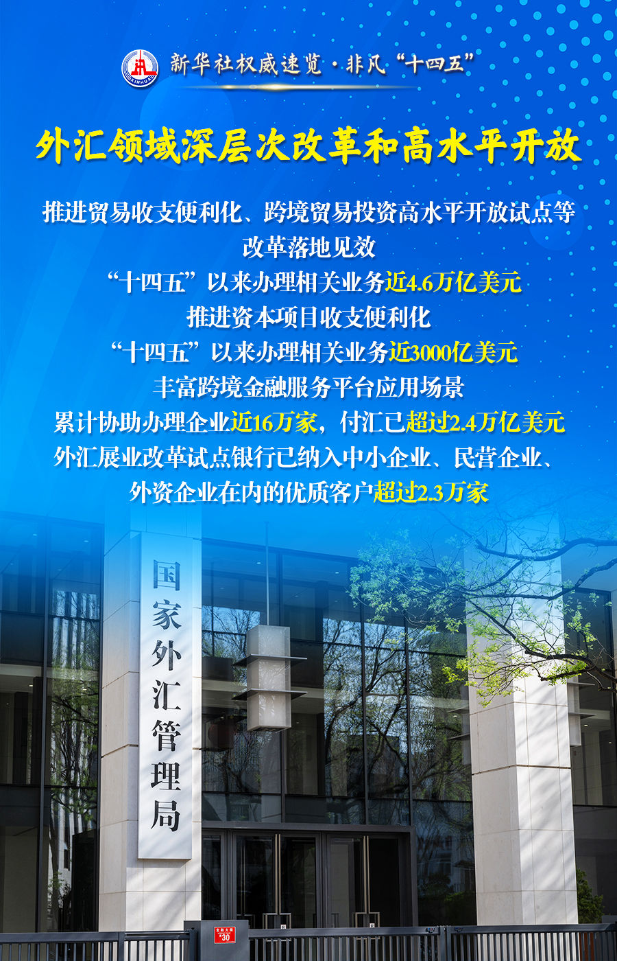 22日举行的“高质量完成‘十四五’规划”发布会上,中国人民银行、金融监管总局、中国证监会、国家外汇局介绍“十四五”时期金融业发展成就:金融体制改革全面深化,金融强国建设迈出坚实步伐,资本市场健康稳定发展的态势持续形成并不断巩固,外汇领域稳步推进高水平开放……跟随海报,一起了解。
