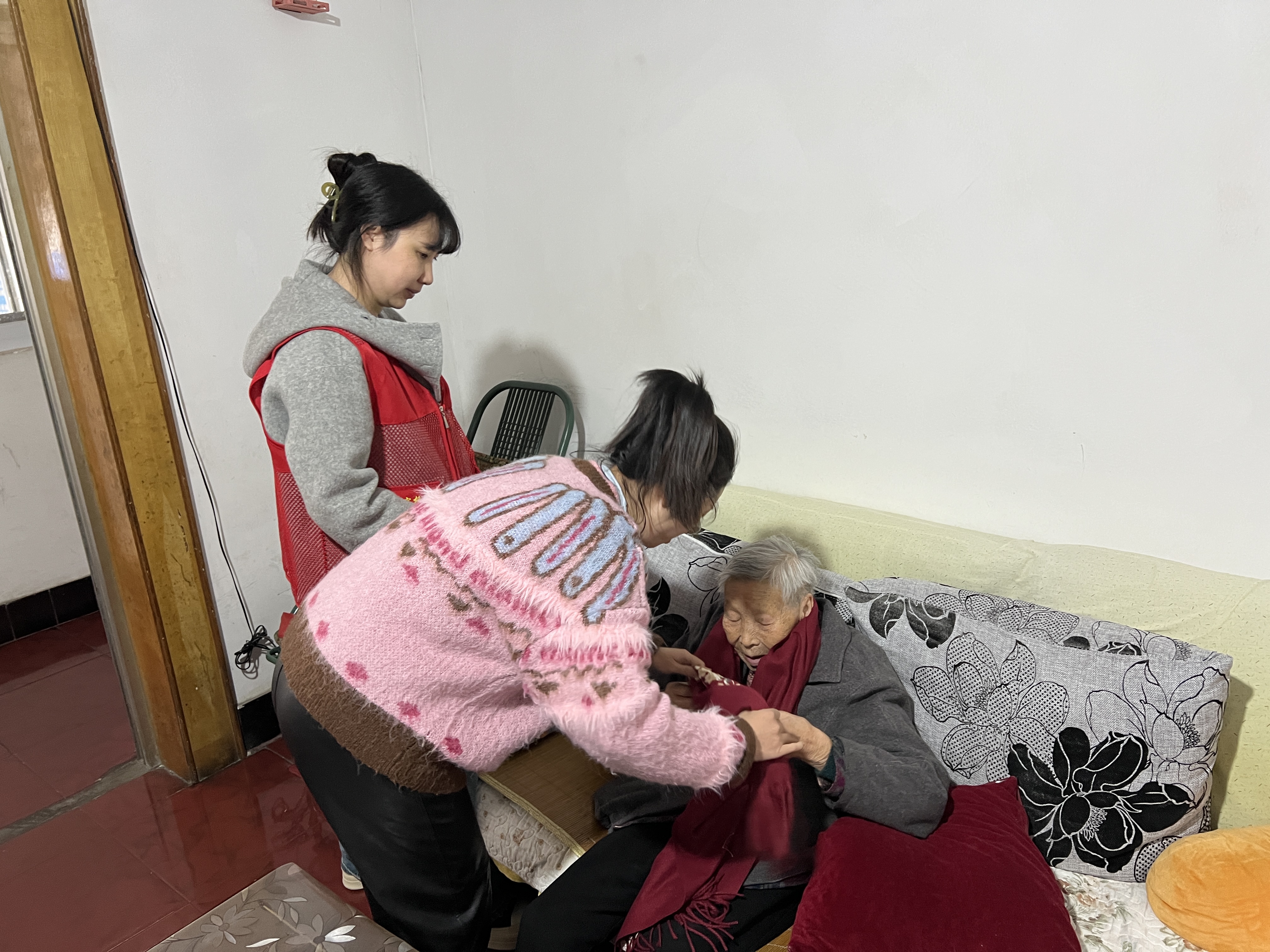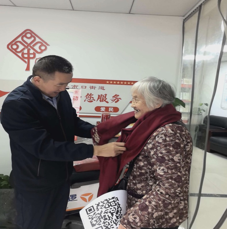 活动中,社区书记与工作人员为每位老人送上定制爱心围巾,以实用礼物帮助老人抵御冬日寒冷,并细致询问他们的生活状况与需求。