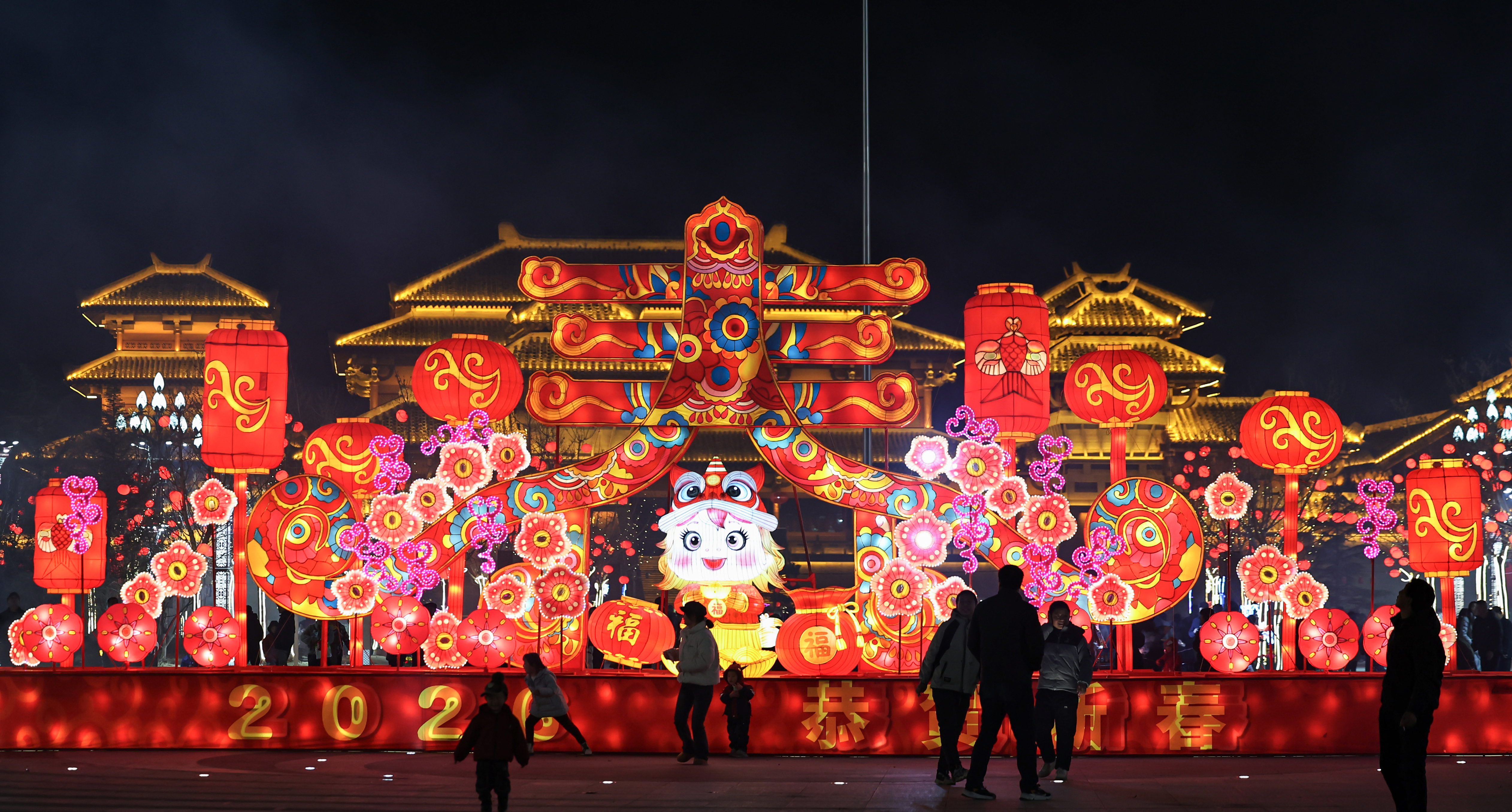 ↑ 2月13日,市民在甘肃省静宁县成纪文化广场赏花灯。新华社发(侯崇慧 摄)