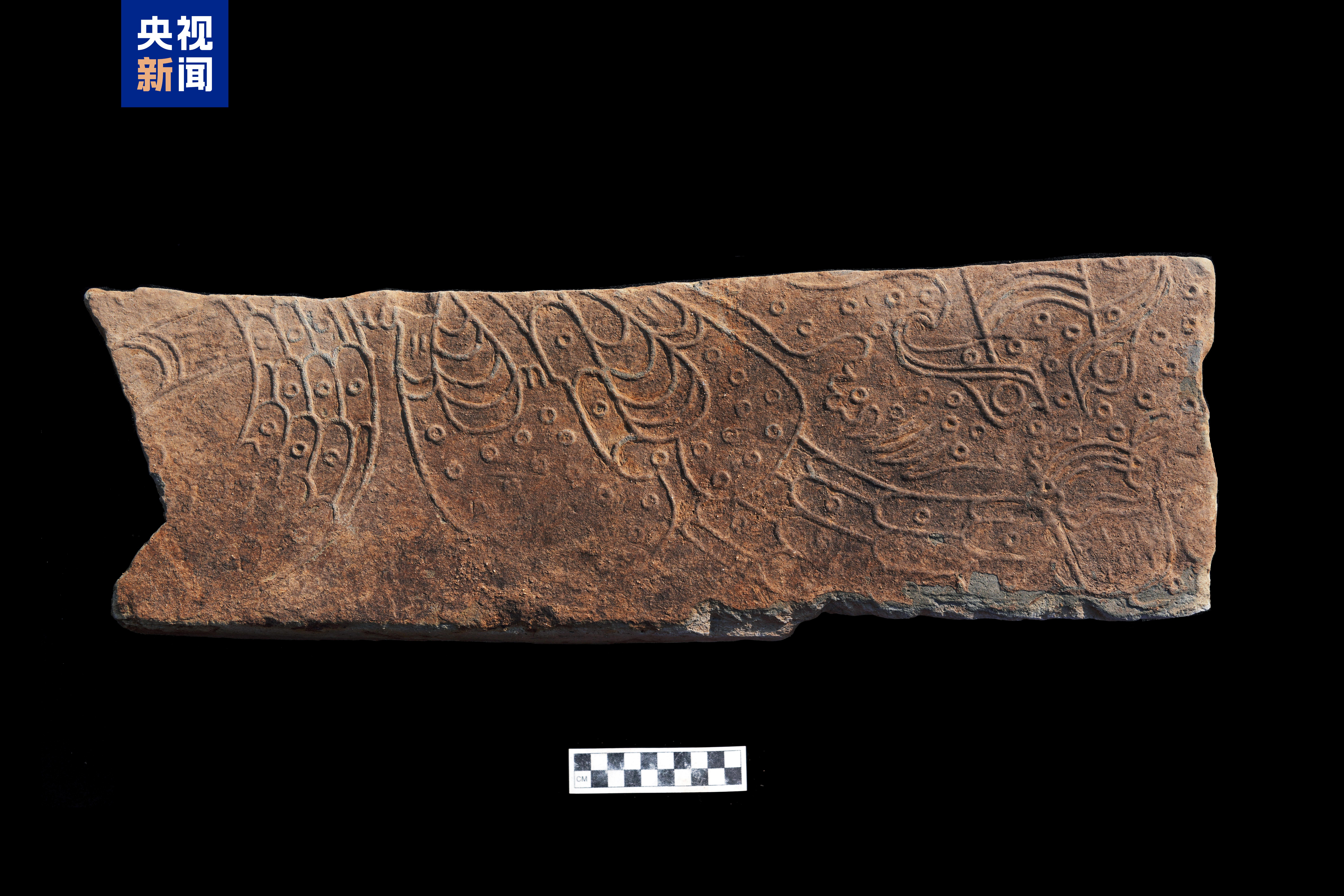 △山东青岛琅琊台遗址山顶建筑基址龙纹踏步空心砖局部