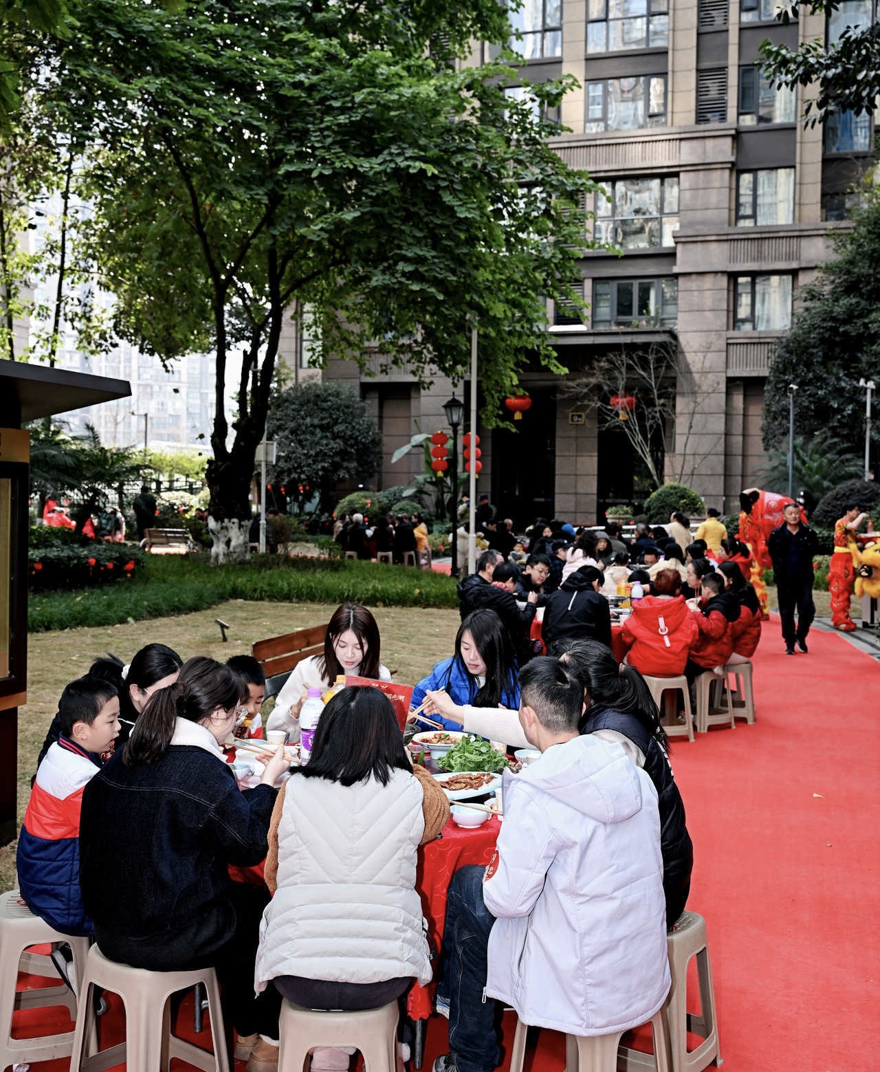 “巴适!以前小区新年也有活动,但是以节目表演为主,像这样几百号邻居一起热热闹闹吃顿饭,还是头一回,感觉特别有‘家’的团圆气氛。”业主王女士一边品尝美食,一边高兴地说道。她的感受道出了许多参与业主的心声。这场别开生面的坝坝宴,吸引了小区众多家庭踊跃参与。“重点不是吃得多丰盛,而是吃个热闹的氛围,难得有机会和这么多邻居一起聚聚,增进感情。”业主李阿姨笑着说道。