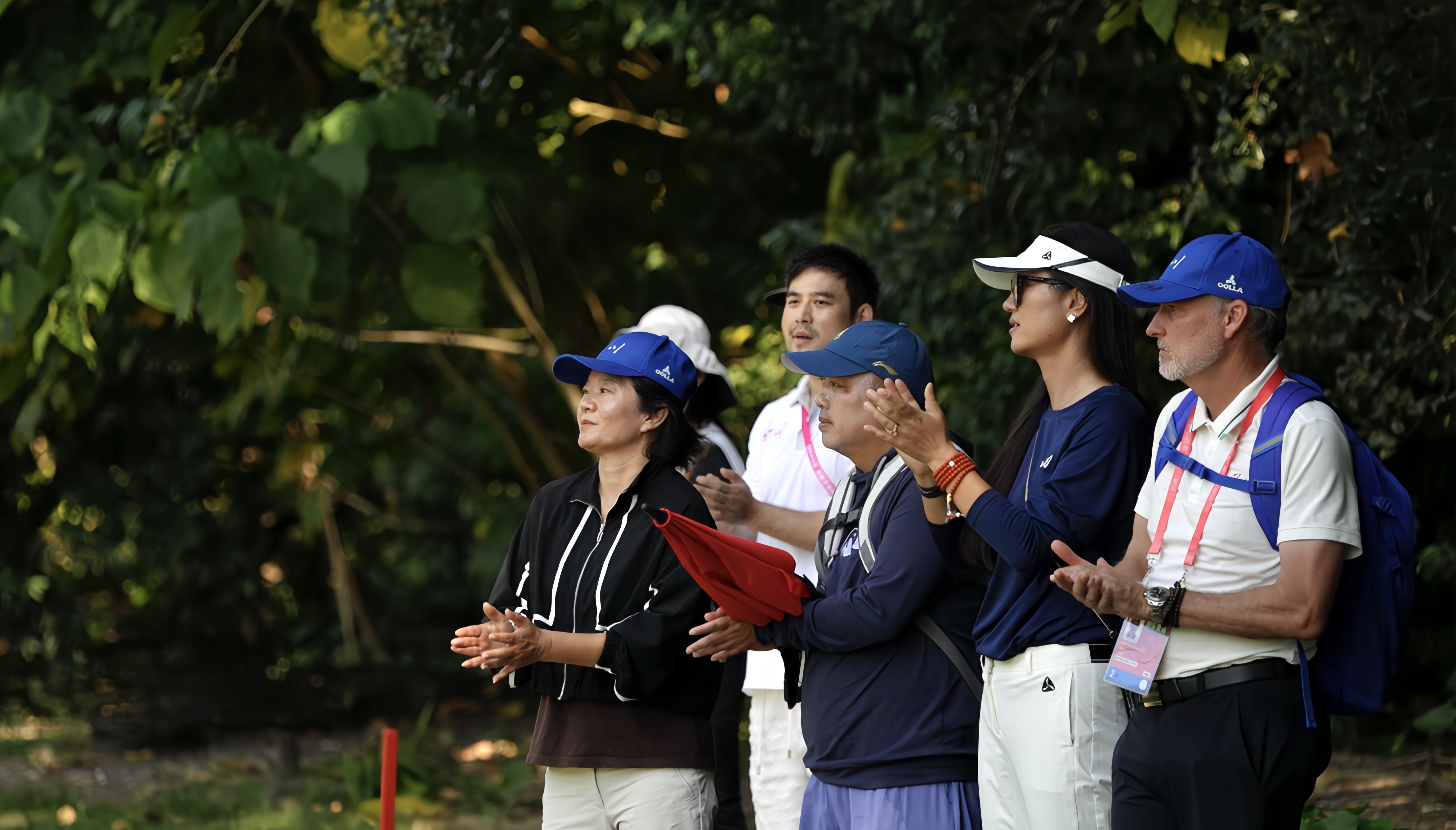 香港粉岭全运会赛场,天气比较热,来到16洞时气温接近30度,但刘宇婕几乎全家出动:“我觉得很感谢,因为我爸爸妈妈和我姥姥和妹妹和姥爷都来了。因为他们当时在珠海,正好开车过来。”在比赛现场可以看到,刘宇婕的父亲刘国梁背着大包,在烈日下一直跟着女儿的比赛动线走动,看到女儿打出好球也会高声鼓励为她鼓掌:“我觉得有他们支持,我后面两轮确实打的更好了一些。”刘宇婕也笑着说:“我觉得可能待会儿打完,晚上可能会跟他们见一下。”
