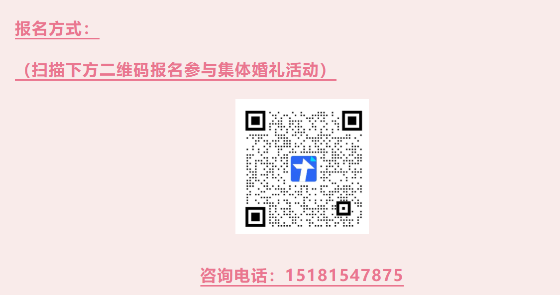 本次活动为公益性质,不收取任何费用。参与活动的新人需配合主办方签订活动确认书,参加流程彩排等,确保集体婚礼正常举行。本次活动最终解释权归主办方所有,婚礼有关事宜另行通知。