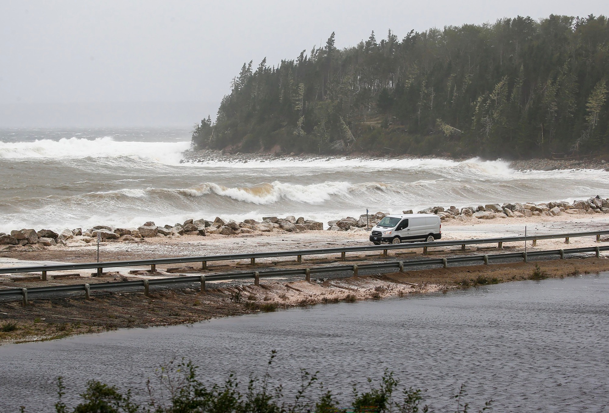 9月16日,受飓风“李”影响,加拿大东部新斯科舍省昆士兰海滨波浪汹涌。新华社发