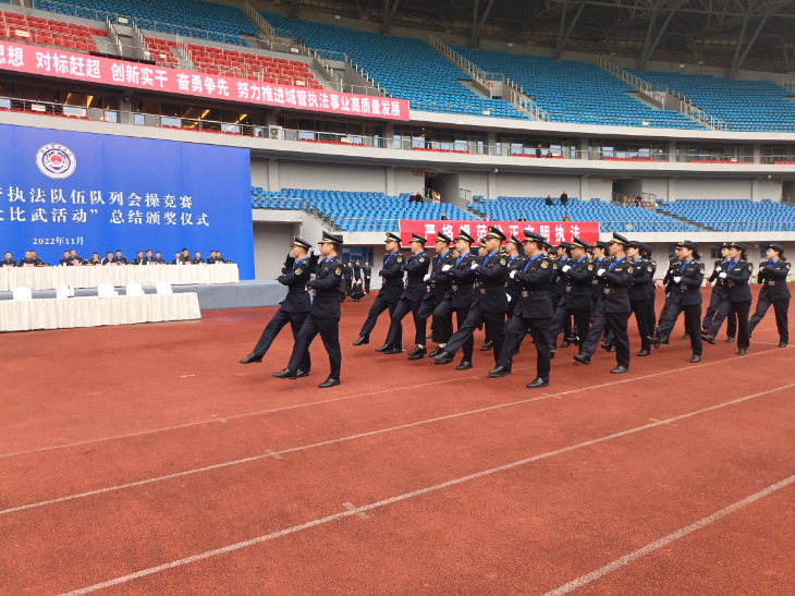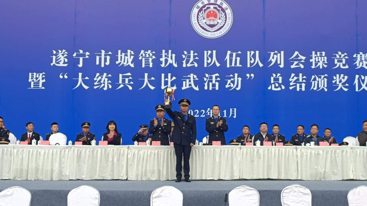 11月9日上午,四川遂宁市城管执法队伍队列会操比赛暨“大练兵大比武活动”总结颁奖仪式,在遂宁市体育中心举行。本次活动共设置队列会操、法律知识、执法办案、数字城管、公文写作等8项团体和个人技能竞赛,9支竞赛队伍、近千名城管执法队员参加。经过两个多月激烈角逐,射洪市综合行政执法局获得集体一等奖。