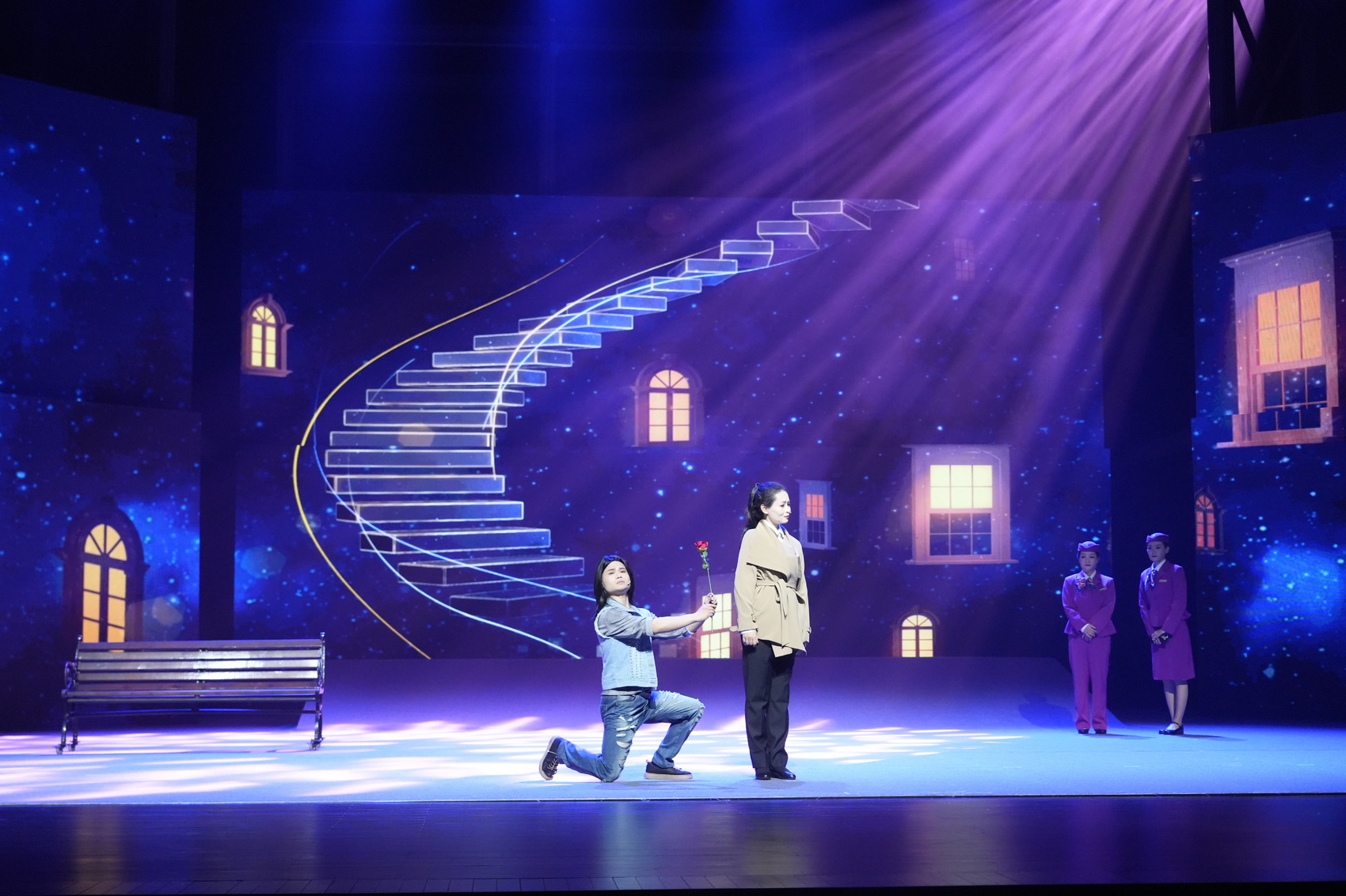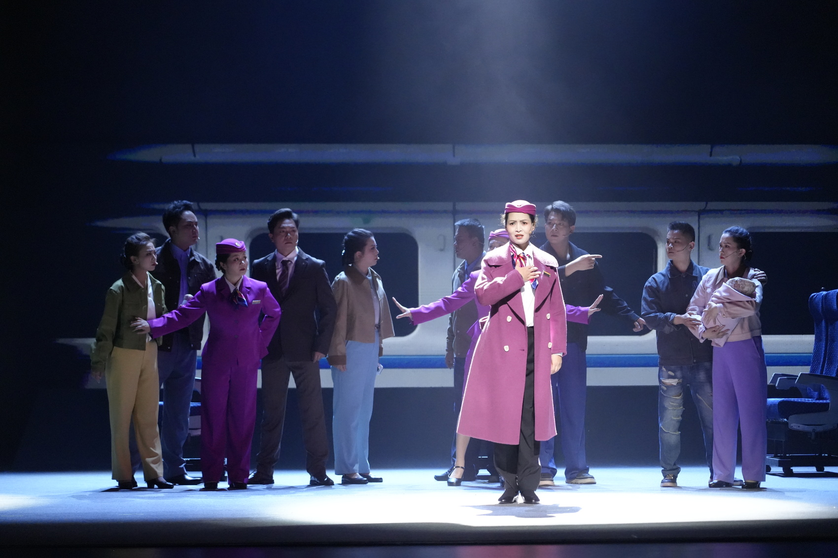 这部由攀枝花市文化艺术中心出品演出的音乐剧,讲述了一位常年奔波于成昆复线的列车长沈知行,与攀研院轨道研究工程师陆修远的偶然相识,让沈知行看到了攀枝花的科研工作者们努力寻找现代工业的新出路,向着创造更多新质生产力的目标前行,两人冲破了层层阻碍最终走近彼此,在这座“钒”花盛开的城市,向着幸福美好的未来一路携手同行。