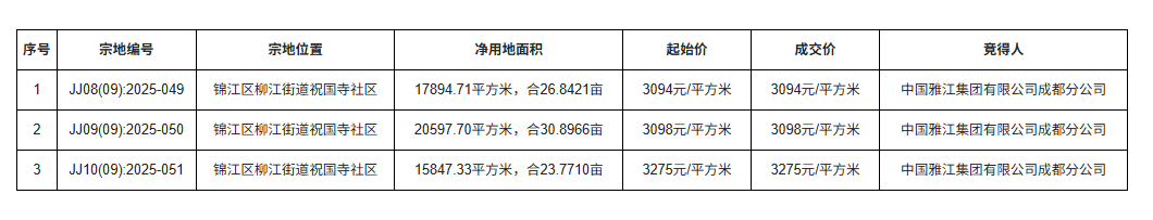 继昨日(11月19日)大悦城控股竞得青羊区蔡桥板块104亩商业用地后,今日(11月20日)金融城三期三宗合计约81亩的商服用地成功出让,竞得者均为中国雅江集团有限公司成都分公司。