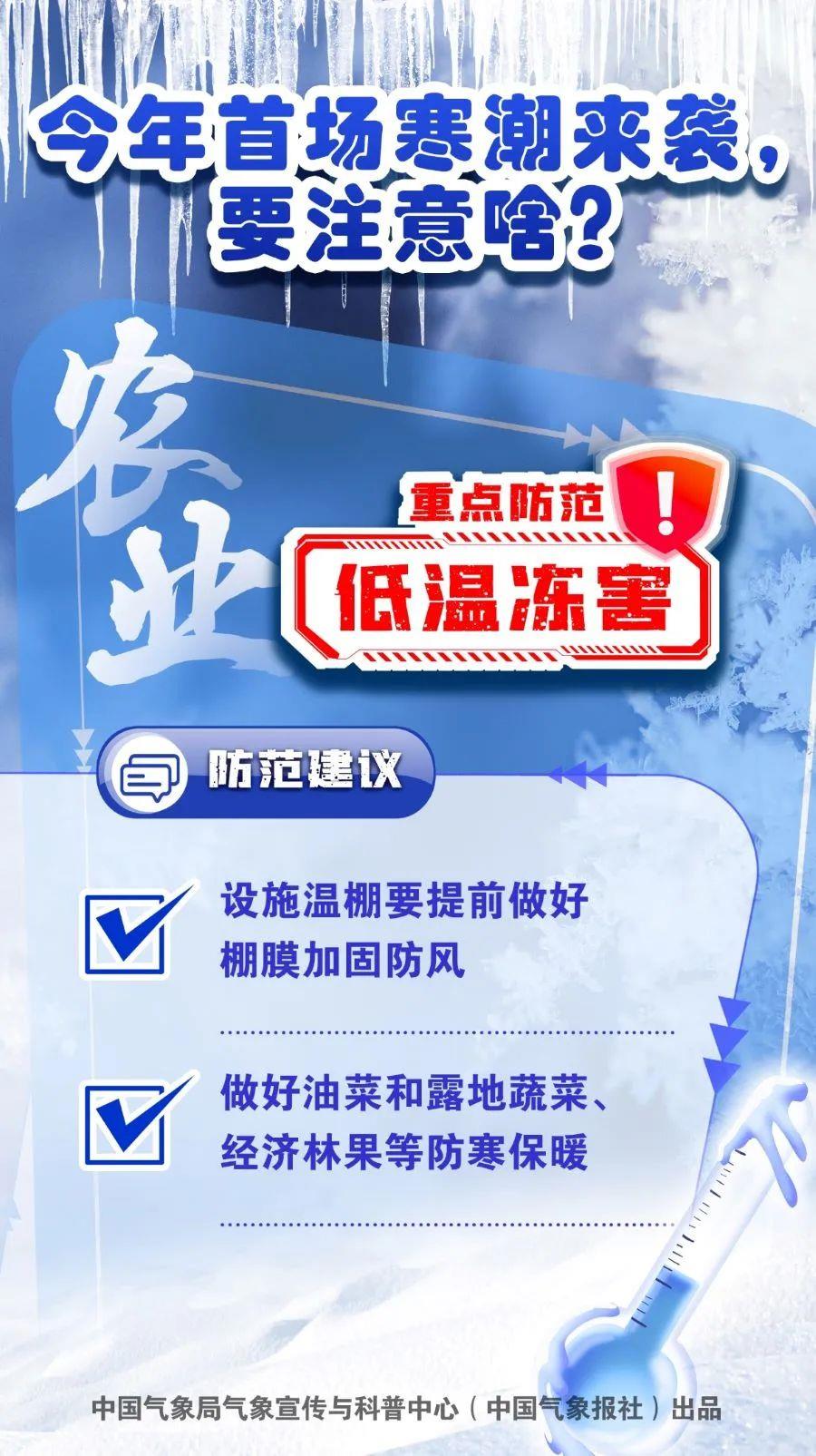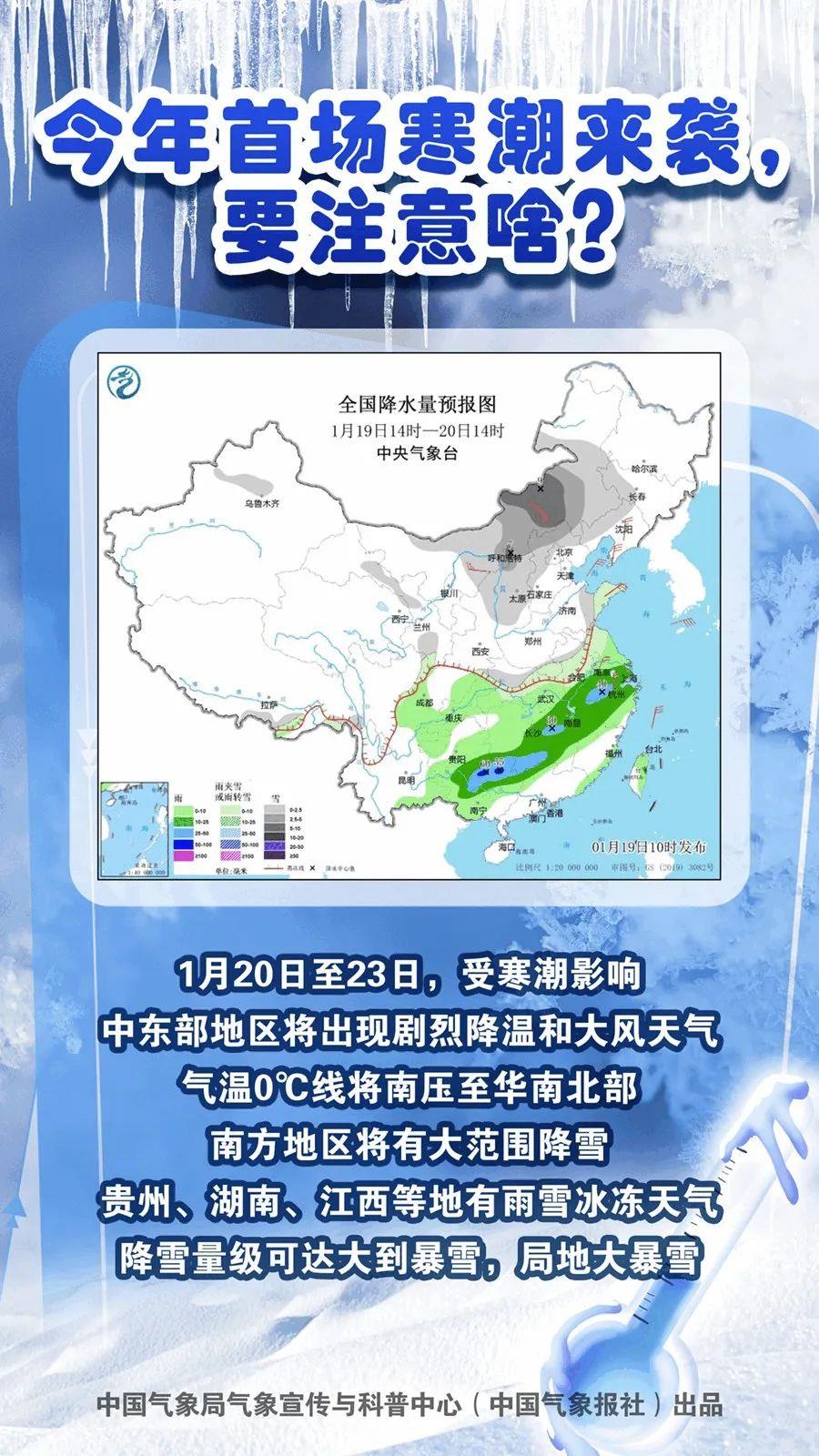 今年首场寒潮来袭,要注意啥? 央视新闻客户端 2024-01-20 07:09 155333 1月20日至23日,2024年首场寒潮天气过程将影响我国。中央气象台19日18时发布寒潮蓝色预警。寒潮来袭,要注意啥?一组海报告诉你↓ 评论 2 苏记说事 2024-01-21 发表于四川 注意保暖 fm954e53 2024-01-20 发表于四川 全民保暖哦 我要评论