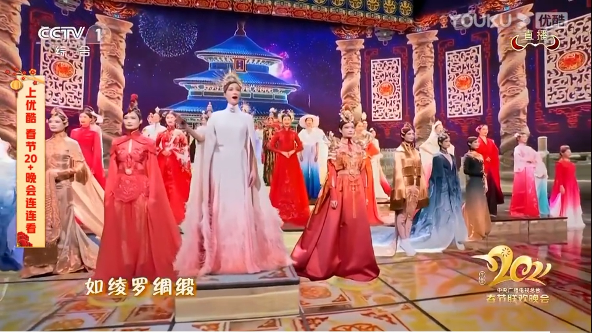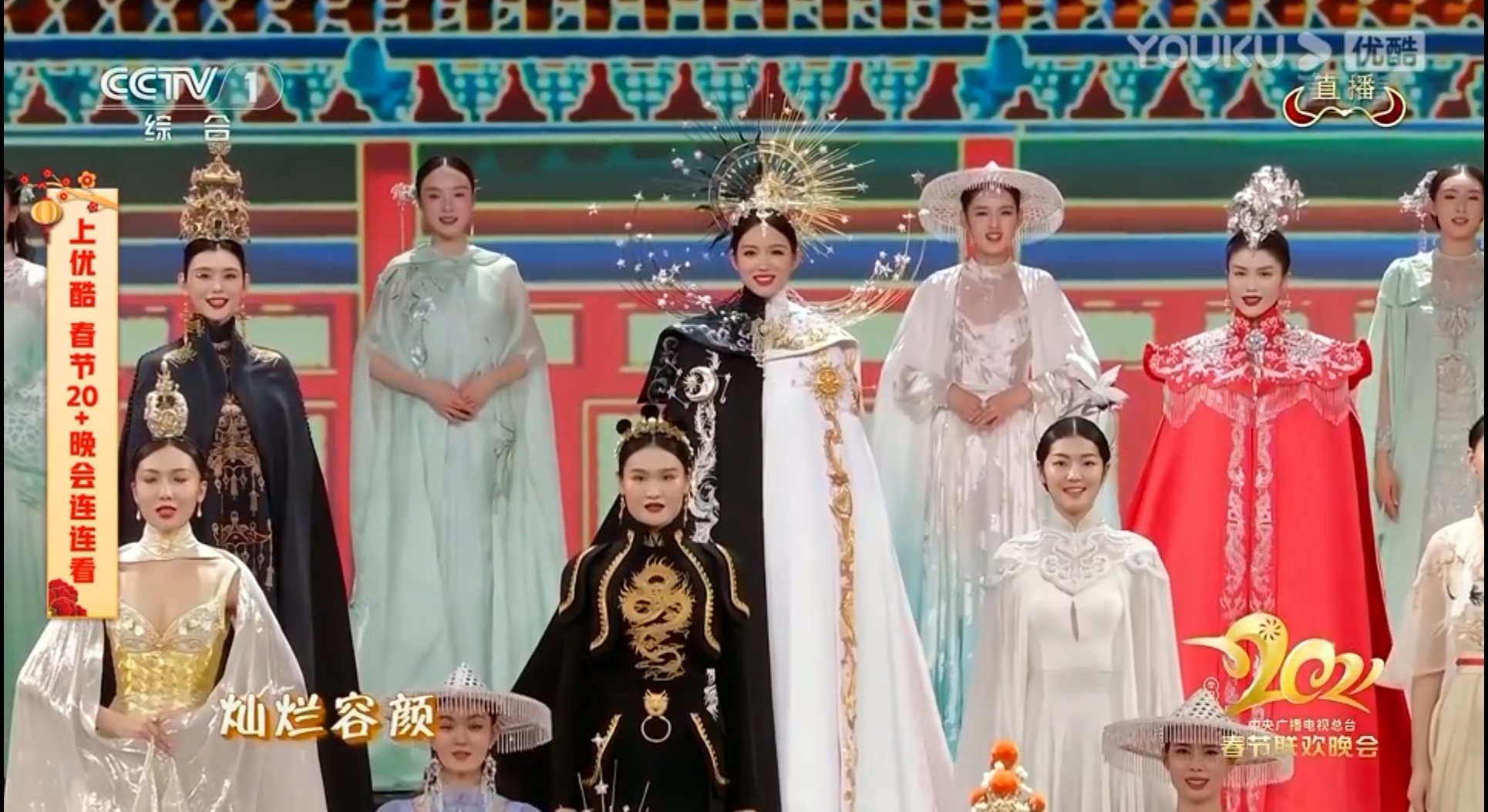 而由李宇春、何穗、张梓琳、奚梦瑶等人带来的时装走秀《山水霓裳》,舞台像一幅美丽画卷,五分钟带领观众走过一年四季,尤其李宇春一键变装18套华服,中国风+科技感,惊艳四座。
