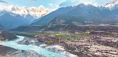 与一般想象中的雪域高原景致不同,来到西藏林芝米林市的沟沟谷谷,满眼都是烂漫的野花、茂密的丛林。