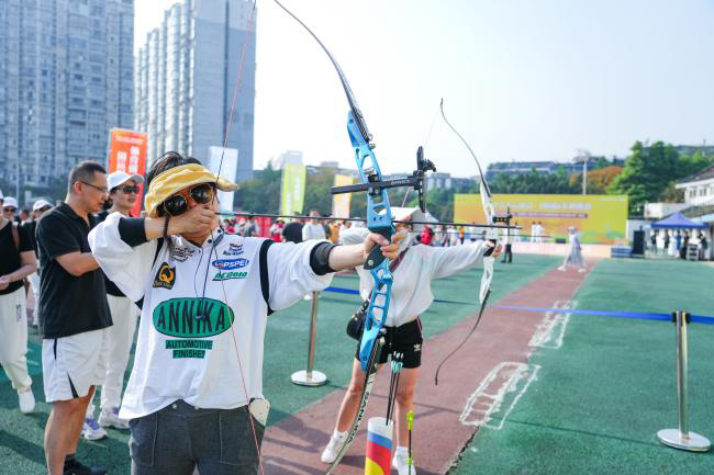 在新金牛公园,“迎大运·乐动蓉城”群众文体活动也在同一时间火热上演。现场歌舞飞扬,非遗项目表演、大运歌曲传唱、国潮舞狮展演、川剧集锦演出轮番登场,加上射击、飞盘等大运项目的趣味体验互动,让市民感受到浓烈的大运氛围和成都风情。“期待!太期待了!作为成都人,我们一直在盼望大运会早日举办!”在现场观看表演的成都“嬢嬢”冯阿姨激动地说。
